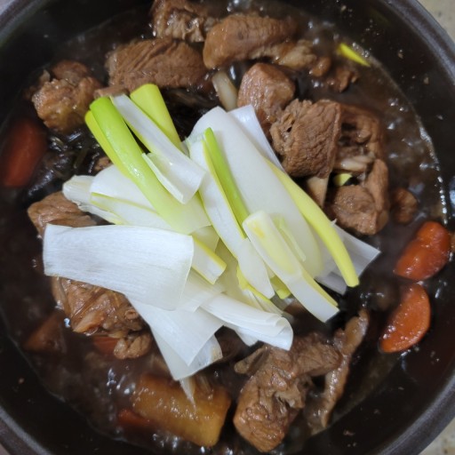 - 표고버섯이나 기호에 맞게 대파를 올려 살짝만 더 약불로 졸여 준 뒤 먹어도 맛있는 돼지갈비찜이 완성돼요.