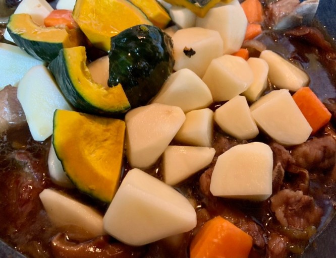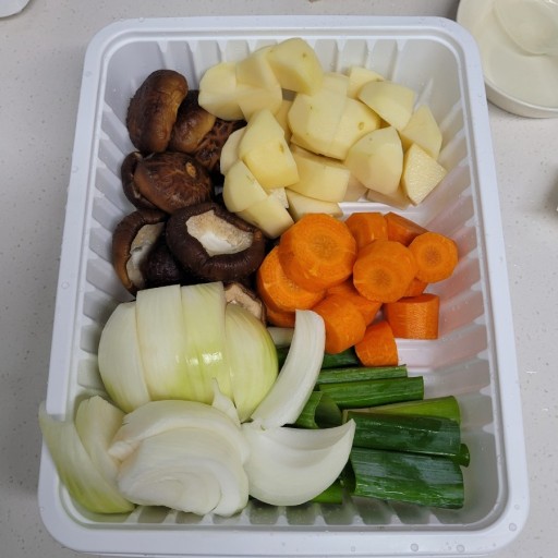 - 미리 준비해 둔 무나 감자 당근은 한입 크기로 잘라 넣어 함께 끓여 준다.