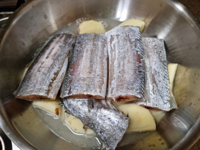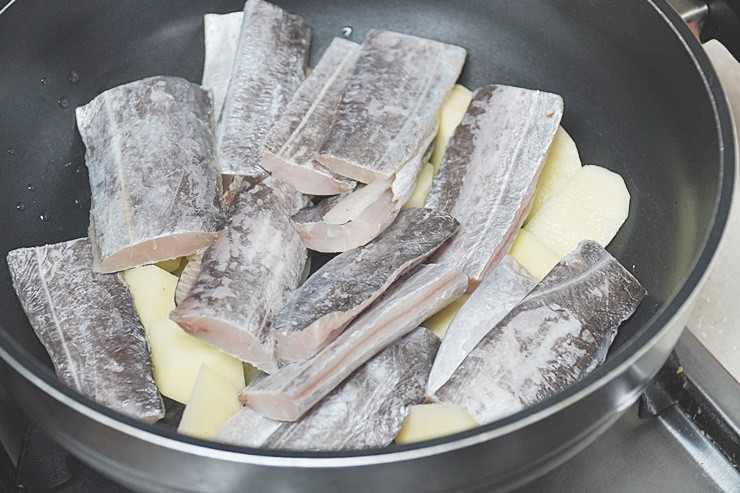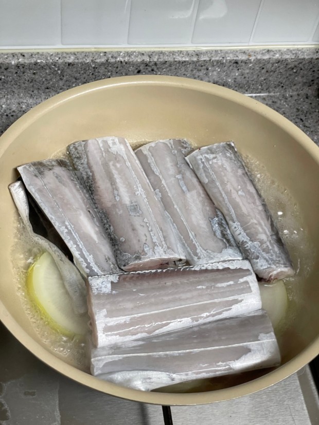 - 뚜껑을 닫고 끓여줍니다.(수증기가 갈치살을 더 촉촉하고 부드럽게 해 줍니다.)