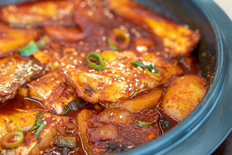 - 감자 1개(슬라이스), 시래기 한 줌, 간장 7큰 술, 맛술 5큰 술, 간 마늘 1큰 술, 육수 3컵(600CC)을 넣고 센 불에서 끓인다