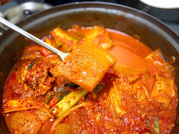- 고춧가루는 끓인 후 섞어준다 : 고춧가루를 미리 넣고 끓이면 텁텁한 맛이 강해지기 때문입니다.