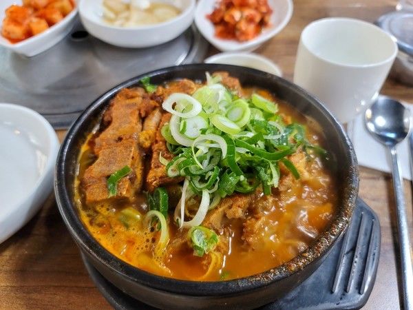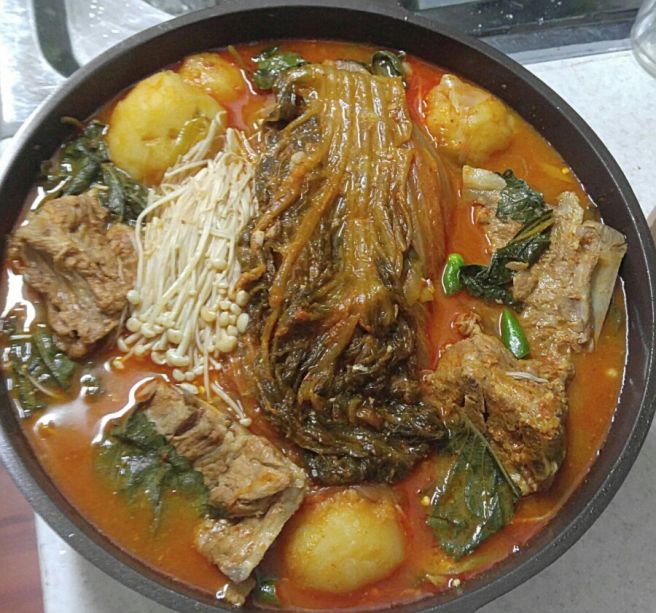 - 그래야 채소가 너무 물러지지 않습니다. 이제 완성된 감자탕은 먹기 좋게 옮겨 담아 맛있게 즐기기 바란다.