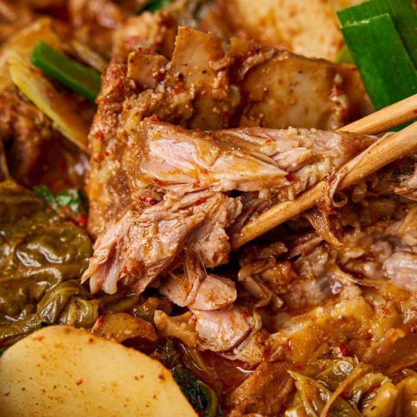 - 총 2시간을 끓여 이뤄진 우거지감자탕, 먹기 편한 그릇이나 냄비에 옮겨요. 뼈가 톡! 쉽게 부서지고, 살이 분리되는 우거지 감자탕 황금레시피 완성이죠.