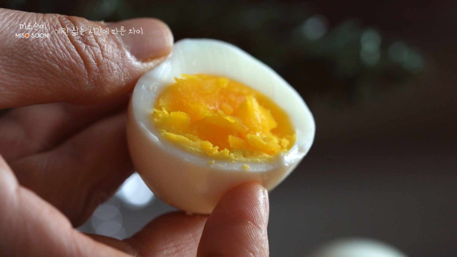 3. 흰자는 부드러운데 노른자는 겉면만 익을 정도로 삶기