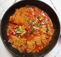 - 등갈비에 김치를 돌돌 말아서 전골냄비에 차곡차곡 넣어 주세요
