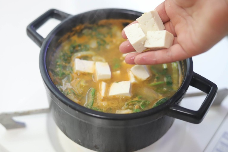 - 두부를 넣고 너무 오래 끓이지 않아요. 두부가 물어져요.