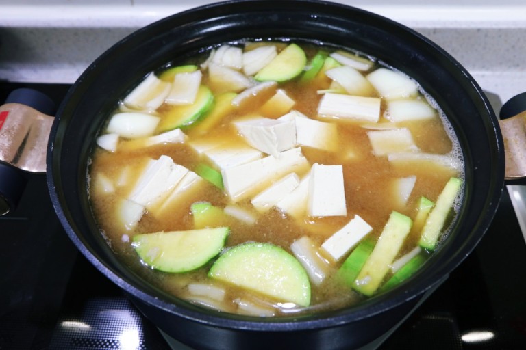 - 지금 대파와 청양고추를 넣어버리면 그 향과 식감이 모두 없어져 버립니다. 그러니 이 두 재료는 나중에 넣어주도록 하자. 두부도 나중에 넣어주자. 그 상태로 10분가량 끓여주면 됩니다.