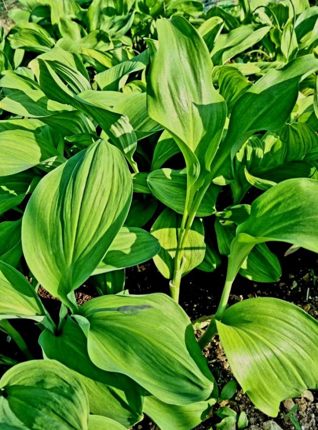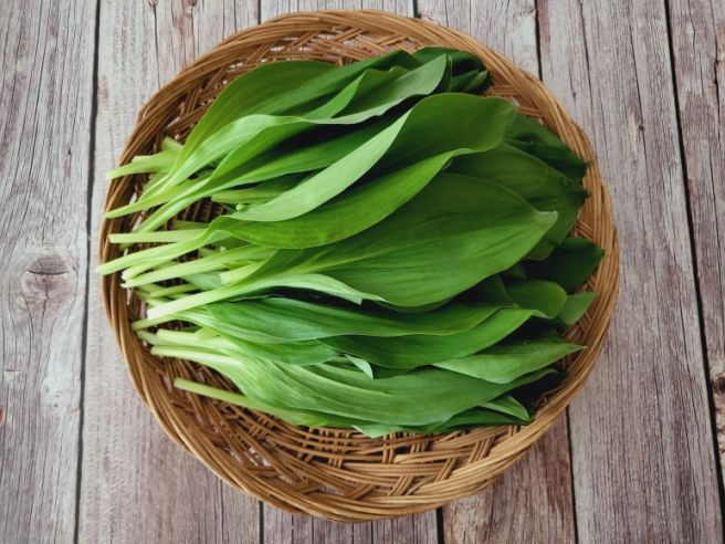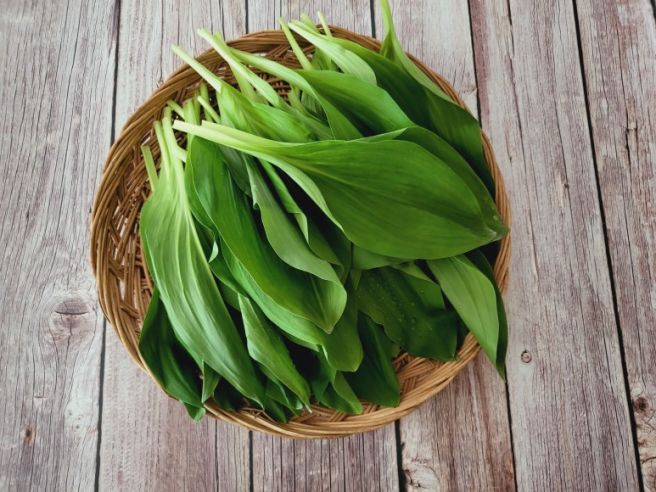 울릉종 산마늘 명이나물은 꽃대와 줄기를 먹는 대명이와 잎만 먹는 잎명이로 나누어지며 한줄기에 명이 잎이 2~3개 달려있고 꽃대가 있는 것과 줄기와 대가 없고 명이 잎만 먹는 걸로 두 종류가 있어요. 산마늘 명이에는 꽃대와 줄기에 영양이 더 풍부하게 들어있어 산마늘 특유의 마늘 향도 꽃대와 줄기에서 더 맛을 느낄 수 있어요.