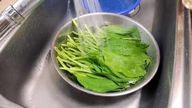 - 명이나물을 흐르는 물에 두어번 빠르게 씻어냅니다. 특히나 명이나물의 줄기 부분을 깨끗이 씻어주세요.