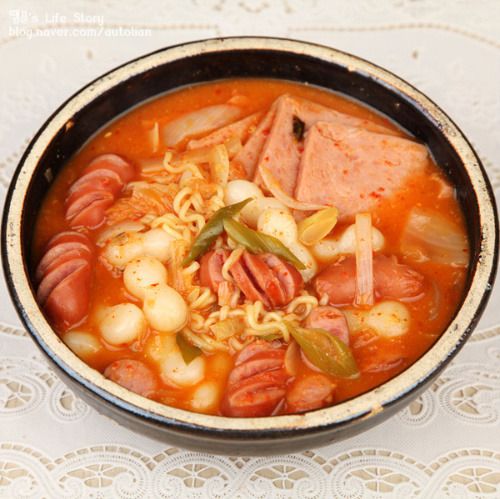 부대찌개 맛있게 끓이는법 부대찌개는 해방 후 미군이 우리나라에 주둔하기 시작하면서 미군들에게 보급되는 식재료들이 인근으로 유출이 많았었는데요. 그중 미군 부대에서 먹다 남거나 몰래 빼낸 고기를 부대 고기라 부르고 그 고기를 넣고 끓인 찌개를 부대찌개라 부른 데서 유래했다고 해요.