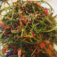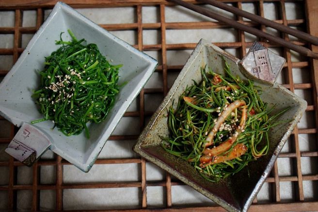 미네랄에 많은 #세발나물을 맛있게 무쳐 봤습니다. 세발나물 은 갯벌에서 염분과 함초를 먹고 자라 여러 가지 비타민과 무기질, 식이섬유와 미네랄이 많은 성분을 지닌 해초랍니다. 11월부터 이듬해 5월 초까지 수확하는 겨울채소로 담백하면서 향도 좋지만 미네랄이 많아 머리카락에도 좋은 바다 채소랍니다.