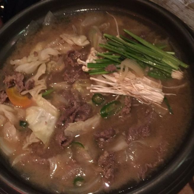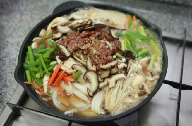 - 완성되면 불을 끄고 참기름을 살짝 두르고 참깨도 살짝 뿌려 완성돼요완성된 불고기는 일본전골처럼 노른자에 찍어 먹어도 되고~ 냉면 사리랑 흰자를 풀어 먹어도 된다는 팁까지 알려줬어요.