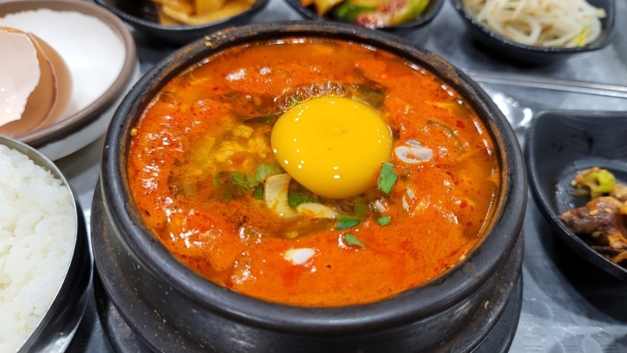순두부찌개 맛있게 끓이는법 - 보글보글 끓어오르면 먹기 직전 계란을 깨트려 넣어 주시면 됩니다.