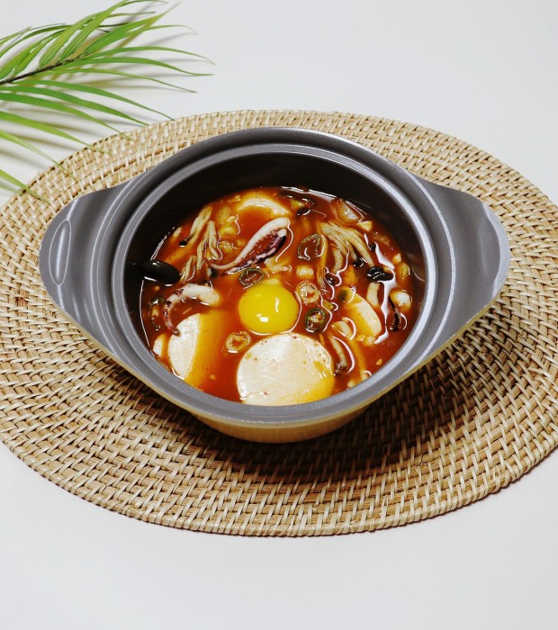 - 만들어 둔 순두부 양념장 160g을 넣습니다. 이때 사용하는 물은 곰탕국물이나 멸치육수 등을 활용해도 좋다고 한다.