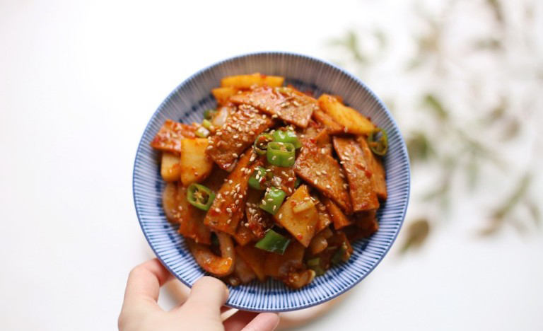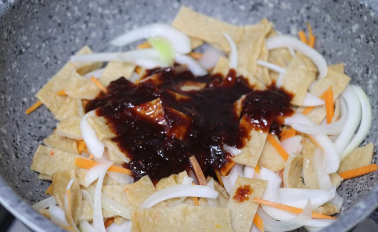 - 고추기름을 내서 칼칼하게 만든 어묵볶음인데요.