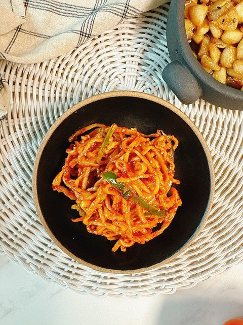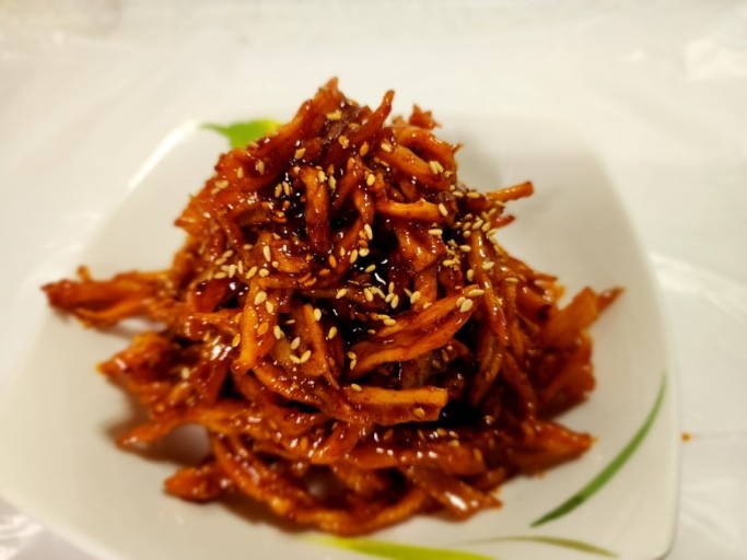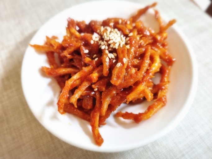 오징어채볶음 역시 너무나 좋아했던 밑반찬 중 한 가지였는데, 아이들 입맛은 다 비슷한지 우리 아이들도 이 음식만 해 주면 손으로 집어먹기 바쁘다. 자주 해주면 질릴까 봐 한 달에 한번 정도는 꼭 해 주는 반찬으로 간장베이스로 만드어 주기도 하고, 고추장을 넣어 매콤하게 만들어 주기도 한다.오징어채볶음 맛있게 만드는법