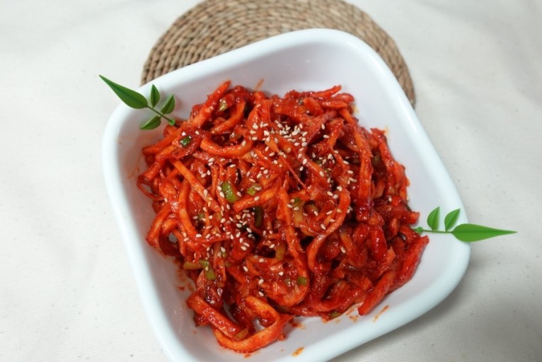 평소에 매운 음식을 많이 섭취하는 분들은 밑반찬 하나도 매콤하게 드시기 때문에 볶음 요리 또한 매콤하게 드시는 걸 선호하신다. 고추를 고명처럼 올려 두어도 좋다. 양파나 기타 다른 재료는 넣지 않는데 이유는 채수가 나오기 때문이다. 하여 어떤 오징어채볶음 요리에도 양파나 파, 당근을 넣지 않고, 오직 오징어채만 넣어 볶는 이유가 바로 거기 있다.