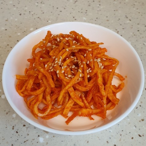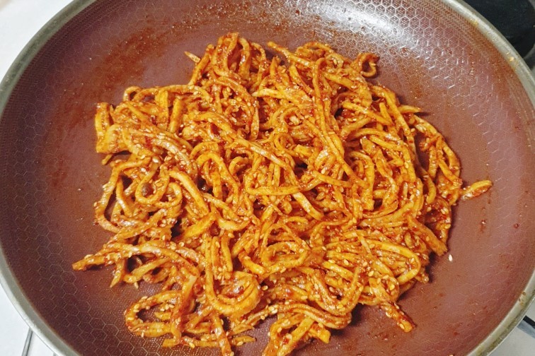 - 마요네즈와 고추장을 넣고, 한번 더 버무려 준다.