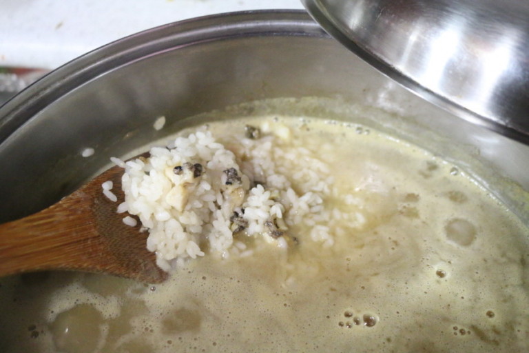 - 불린 쌀과 찹쌀을 넣어준 후 내장도 같이 넣어서 볶아준다. 볶을 때 중불로 놓고 볶는다.