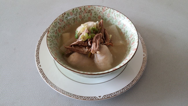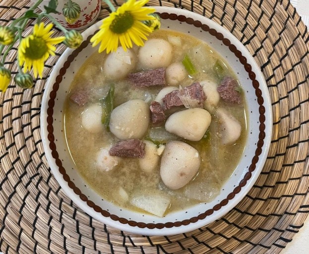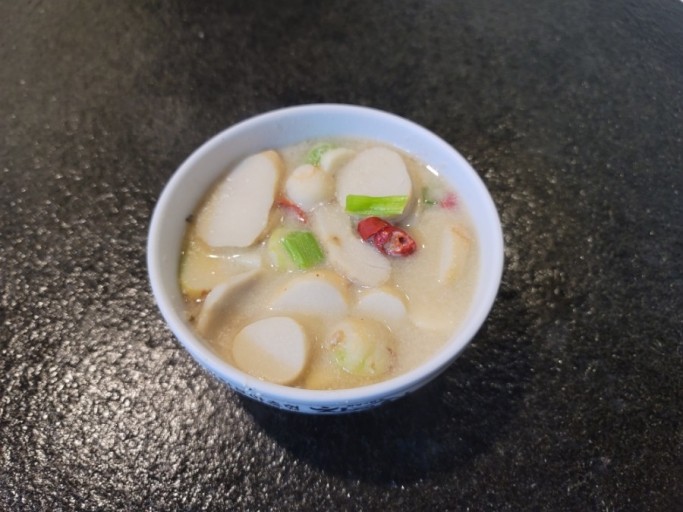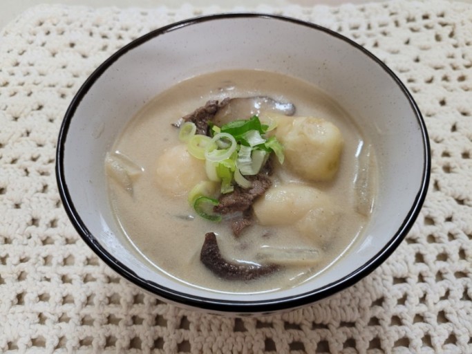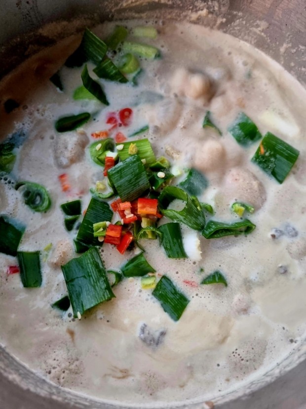 - 15분가량 더 끓인 후 대파를 추가하고 다진 마늘, 국간장을 넣고 한소끔 끓이면 토란국이 완성돼요.