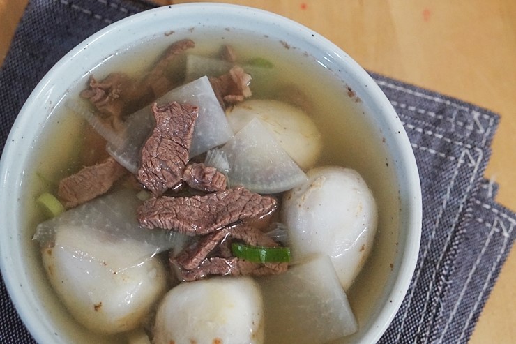 - 소고기 토란국 맛나게 끓이는 법이 완성됩니다.